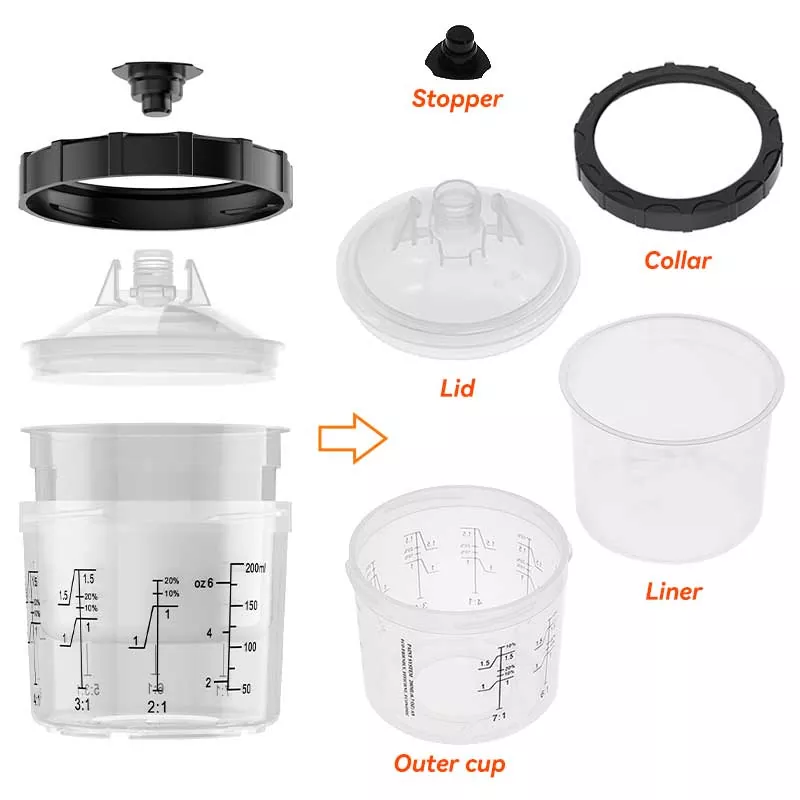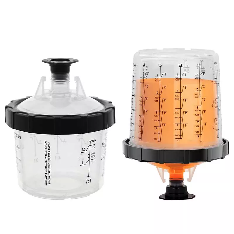 Hệ thống cốc sơn dùng một lần 200ML 1.0 này về cơ bản thay thế cốc nạp trọng lực truyền thống vì nó không chỉ tiết kiệm sơn hơn mà còn cải thiện hiệu quả sơn. Đặc biệt, thiết kế tinh tế của lớp lót tự động xoắn ốc xuống khi sơn giúp sơn được tận dụng tối đa; trong khi đó, thiết kế khóa nhanh cộng với lớp lót thay thế giúp tránh rửa cốc, cho phép công việc sơn được thực hiện hiệu quả và nhiều lần. Chúng tôi có adapter cho hầu hết các hãng súng phun trên thị trường nhằm đáp ứng nhu cầu trải nghiệm của những người đam mê súng phun khác nhau. Bộ chuyển đổi được làm bằng thép không gỉ, có khả năng chống ăn mòn sơn và rất bền. Sự kết hợp chặt chẽ giữa lớp lót và nắp đảm bảo hệ thống cốc không bị rò rỉ sơn trong khi sơn, đồng thời hỗ trợ bảo quản lâu dài lượng sơn chưa sử dụng, tránh lãng phí.