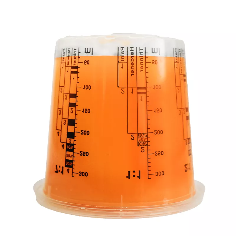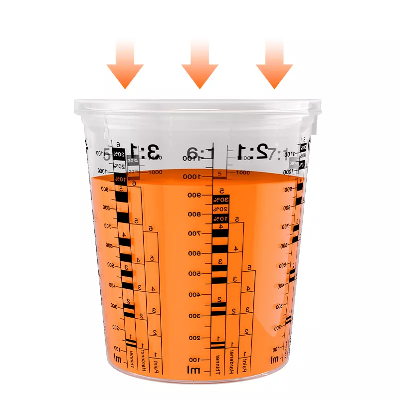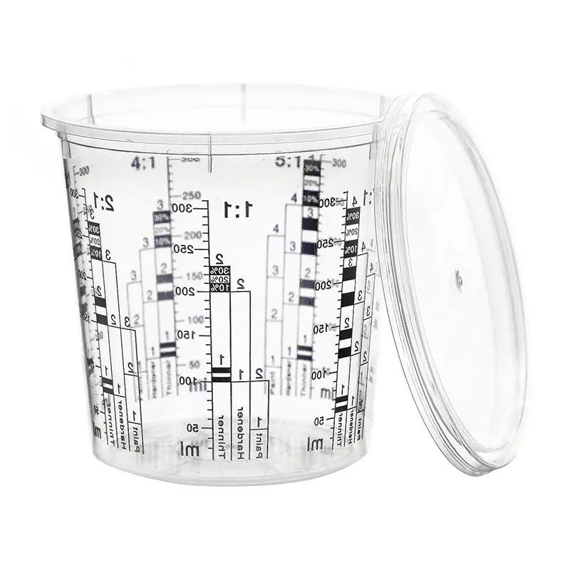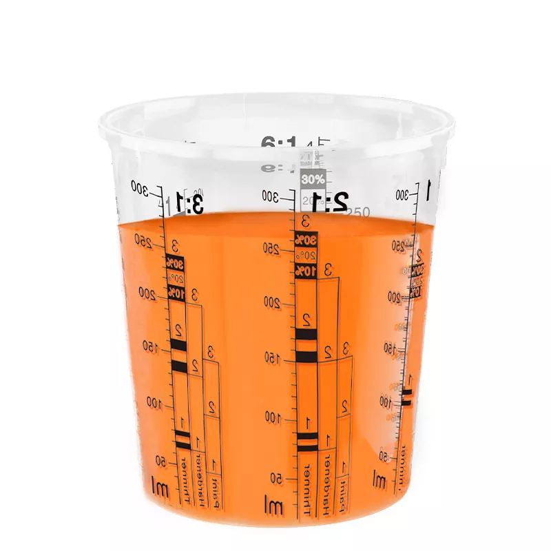 Cốc trộn sơn ô tô PP 385ml có nắp để trộn sơn và bảo quản tạm thời sơn đã hỗn hợp. 7 tỷ lệ pha trộn khác nhau, được in rõ ràng và có thể đọc được từ bên trong. Cốc trộn sơn chất lượng cao có nắp, có thể mua riêng nắp. Chúng tôi cung cấp 5 dung tích – 385cc, 680cc, 1370cc, 2250cc và 5000cc – phù hợp với mọi nhu cầu.