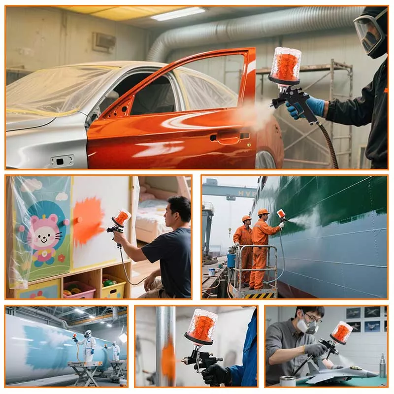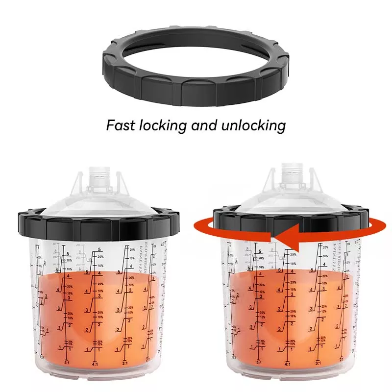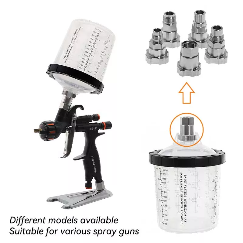 Hệ thống cốc sơn dùng một lần 400ML 1.0 này về cơ bản thay thế cốc nạp trọng lực truyền thống vì nó không chỉ tiết kiệm sơn hơn mà còn cải thiện hiệu quả sơn. Đặc biệt, thiết kế tinh tế của lớp lót tự động xoắn ốc xuống khi sơn giúp sơn được tận dụng tối đa; trong khi đó, thiết kế khóa nhanh cộng với lớp lót thay thế giúp tránh rửa cốc, cho phép công việc sơn được thực hiện hiệu quả và nhiều lần. Chúng tôi có adapter cho hầu hết các hãng súng phun trên thị trường nhằm đáp ứng nhu cầu trải nghiệm của những người đam mê súng phun khác nhau. Bộ chuyển đổi được làm bằng thép không gỉ, có khả năng chống ăn mòn sơn và rất bền. Sự kết hợp chặt chẽ giữa lớp lót và nắp đảm bảo hệ thống cốc không bị rò rỉ sơn trong khi sơn, đồng thời hỗ trợ bảo quản lâu dài lượng sơn chưa sử dụng, tránh lãng phí.