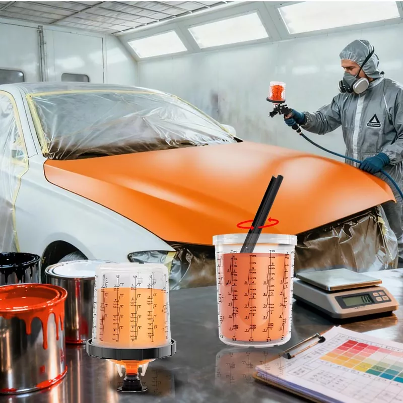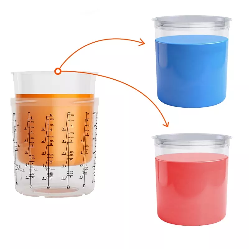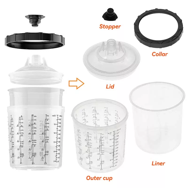 Hệ thống cốc sơn dùng một lần kết hợp các chức năng trộn, lọc, phun và lưu trữ trong một bộ phận. Điều này không chỉ đơn giản hóa việc chuẩn bị trước khi sơn mà còn tiết kiệm chi phí cốc trộn và phễu giấy, khiến chúng trở thành sự lựa chọn hoàn hảo để tiết kiệm thời gian chuẩn bị và nâng cao hiệu quả phun sơn.