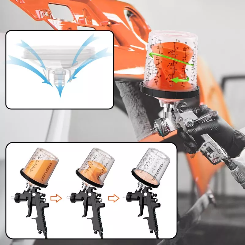 Hệ thống cốc sơn dùng một lần 800ML 1.0 chứa 28,5 fl oz (850 ml) sơn, lý tưởng cho việc sửa chữa 4 bảng hoặc ít hơn vật liệu, bao gồm các lô sơn lớn, trong suốt. Phạm vi này đã được phát triển để cải thiện hiệu quả công việc và chất lượng phun nhằm đáp ứng mong đợi của mọi họa sĩ. Hệ thống cốc phun dùng một lần là một sự thay thế tuyệt vời cho các cốc phun có thể tái sử dụng vì nó làm cho quá trình phun sạch hơn và hiệu quả hơn. Sơn có thể được trộn trực tiếp vào cốc phun và chỉ cần dọn dẹp tối thiểu sau mỗi lần sử dụng. Nếu bạn muốn bán buôn cốc súng phun dùng một lần, vui lòng liên hệ với chúng tôi để lấy mẫu miễn phí để thử nghiệm.