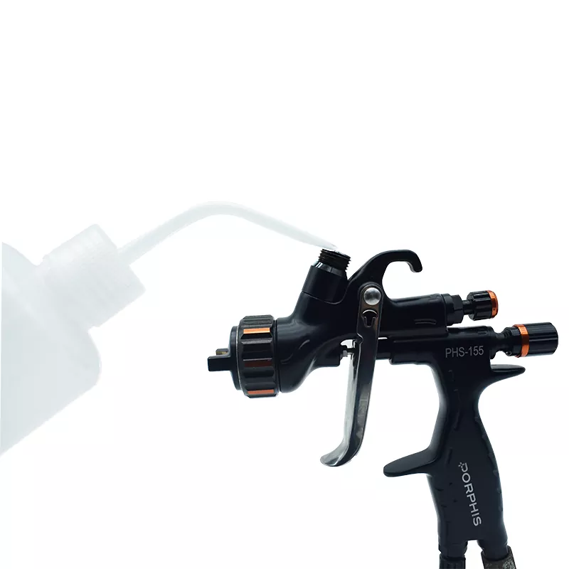 Vòi phun cong độc đáo của chai làm sạch súng phun có thể nhanh chóng xả sơn còn lại trong các khoảng trống sâu bên trong súng phun, có thể ngăn chặn sự tắc nghẽn một cách hiệu quả do sấy sơn, kéo dài tuổi thọ của súng phun và giảm thiểu thời gian tháo rời súng phun để làm sạch.